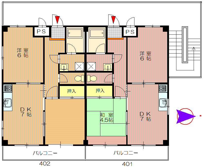 | 間取り | 2DK(DK 8,洋 6,洋 6) | 面積 | 43.4㎡ |