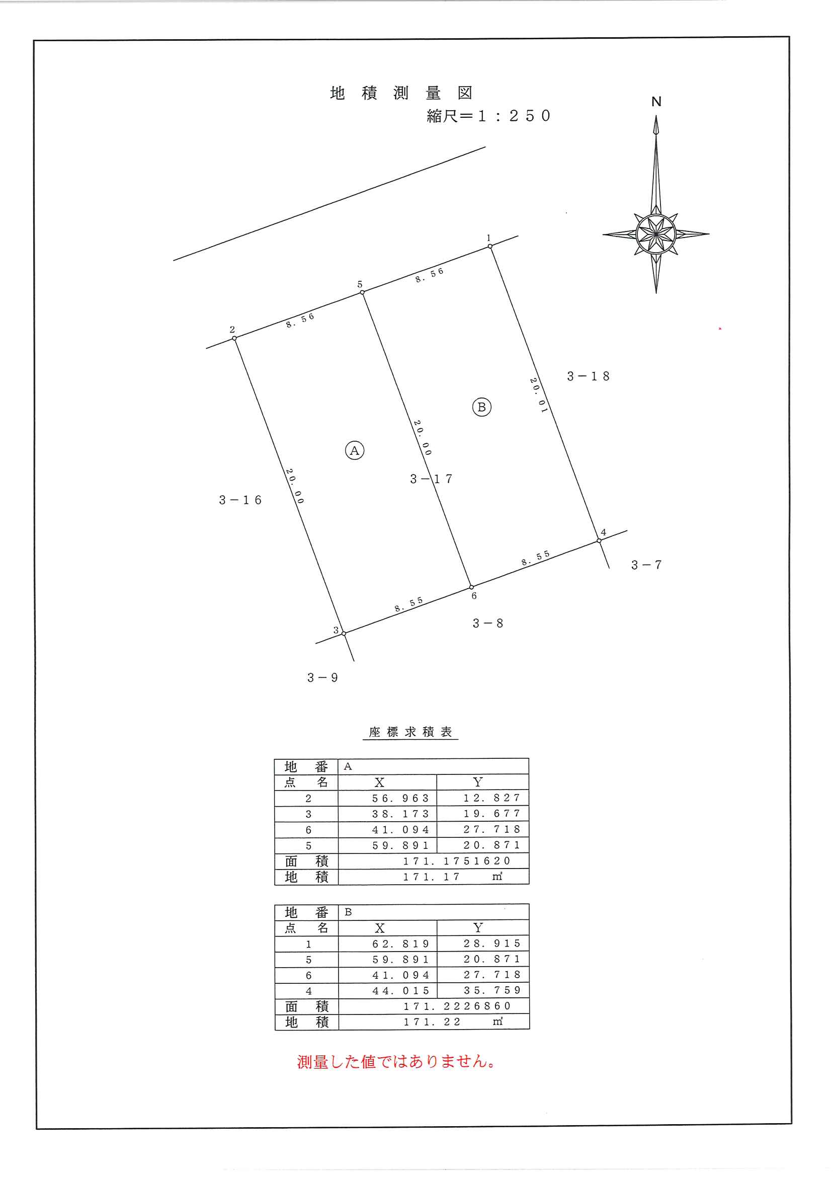 三原市新倉三丁目3番17を2区画に分筆します。 |